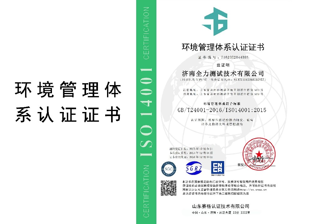 環(huán)境管理體系認(rèn)證證書