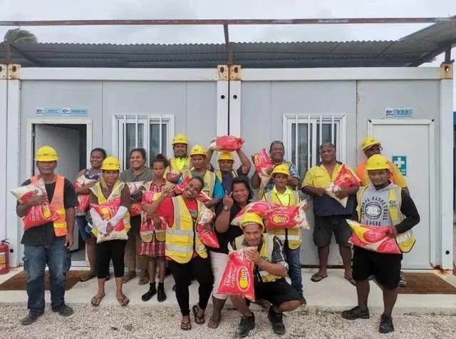 中國企業(yè)為瑙魯當?shù)貑T工發(fā)放節(jié)日慰問品。